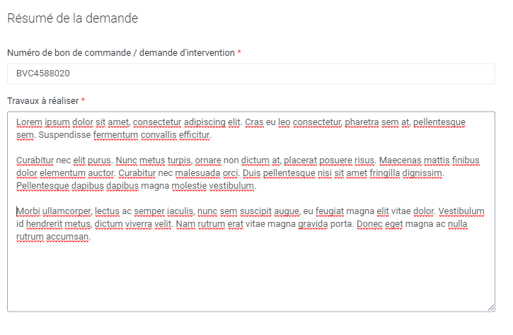 Le champ travaux à réaliser est un descriptif des travaux à faire. Il est important d'être le plus précis possible pour permettre au technicien de cibler au mieux ce qu'il faut faire.