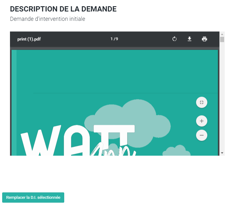 Il est possible de remplacer le PDF en cliquant sur le bouton "Remplacer la D.I. sélectionnée."
