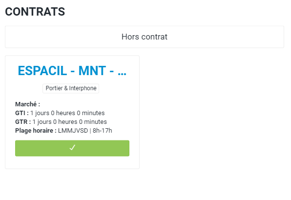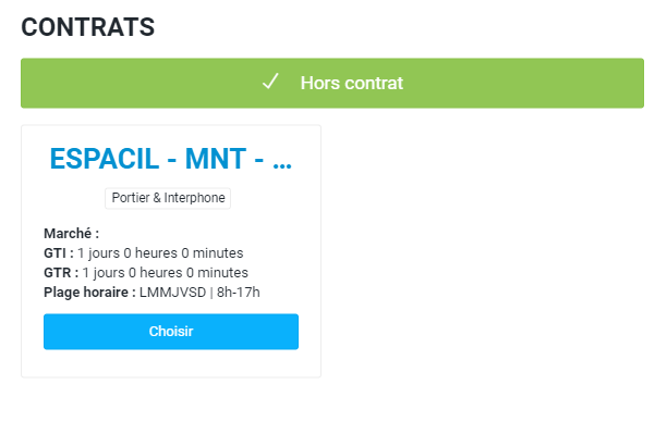 Par défaut, la demande d'intervention n'est pas liée à un contrat. Pour choisir un contrat, cliquer sur le bouton "Choisir" du contrat. Pour retourner à l'état d'origine, cliquer sur "Hors contrat".