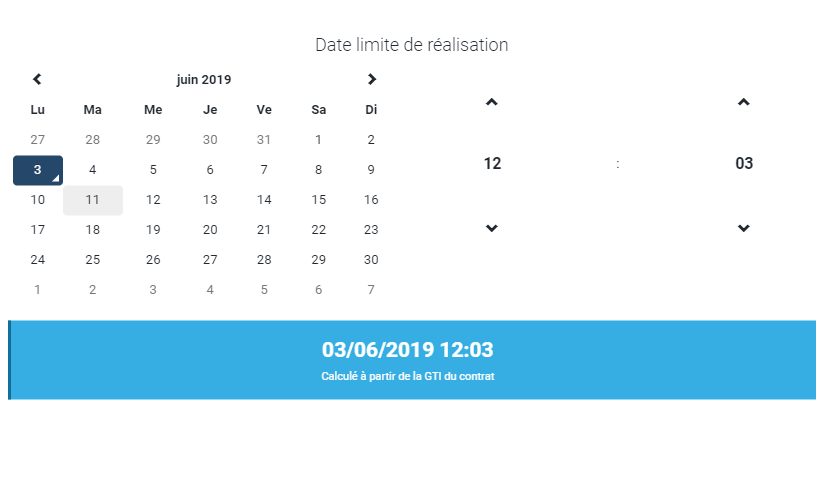 Par défaut, la date limite de réalisation est libre. Si un contrat est sélectionné la DLR se calcule automatiquement avec une indication en dessous.
