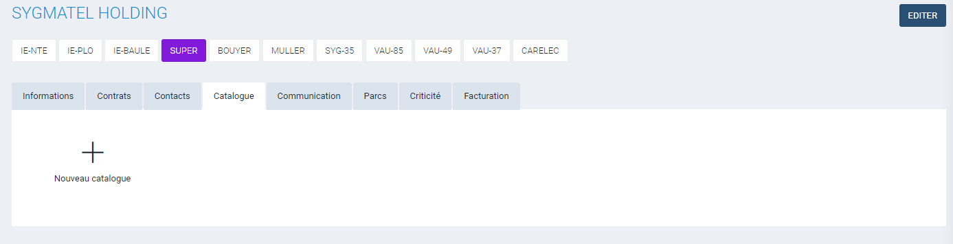 Pour gérer les catalogues de donneur d'ordre, aller sur la fiche du donneur d'ordre.