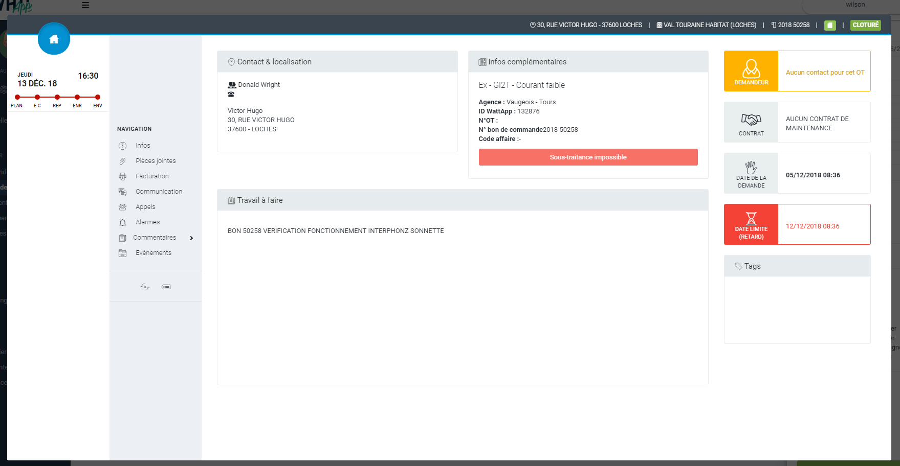 Si l'intervention est planifiée s'affichera alors la date et l'heure de la planification