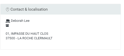 Cette section permet d'avoir d'un coup d'oeil les informations nécessaires à la prise de contact :