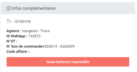 Les informations présentées dans cet encart sont des informations essentielles pour le traitement en interne. En premier lieu, l'activité et la sous-activité sont indiqué tout en haut de la section.