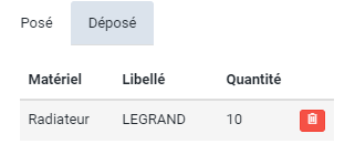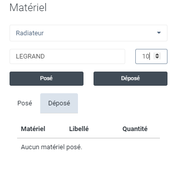 Une fois ces champs remplis, cliquer sur "Posé" ou "Déposé" en fonction du type de matériel.