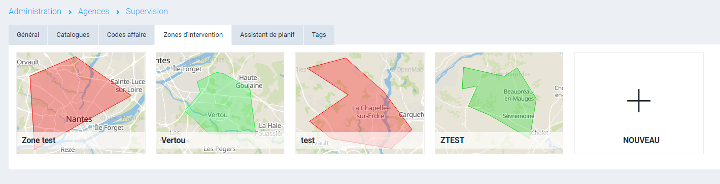 Une zone d'intervention est un périmètre géographique défini sur une carte afin d'effectuer un quadrillage des interventions en fonction d'une agence et de leur zone de chalandise.