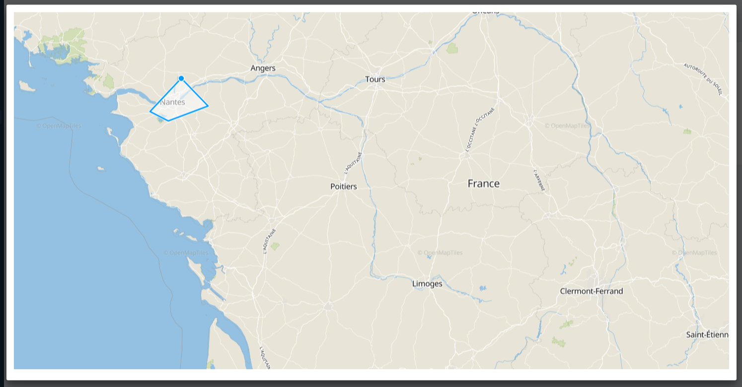 Une fois le périmètre approximativement affiché, cliquer sur la carte pour placer un premier point. Placer autant de points que nécessaires. Pour fermer la zone, revenir sur le premier point cliqué.