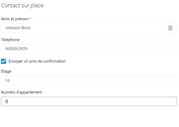Il est également nécessaire de renseigner le numéro de téléphone et au besoin l'appartement et l'étage pour faciliter le contact avec le locataire/concierge/etc.