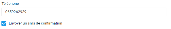Si le numéro du contact est un numéro de mobile (06.xx.xx.xx.xx ou 07.xx.xx.xx.xx) une case à cocher apparaît automatiquement cochée. Il s'agit de l'activation ou non de l'envoi automatique d'une notification SMS de la planification d'une intervention envoyée 24h avant l'intervention.