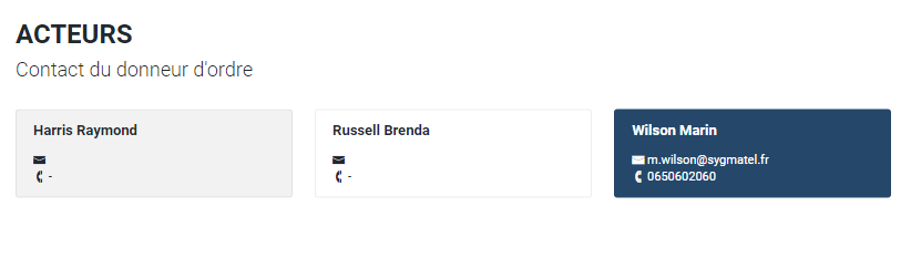 La partie gauche de cette étape est dédiée au choix d'un contact lié à un donneur d'ordre.