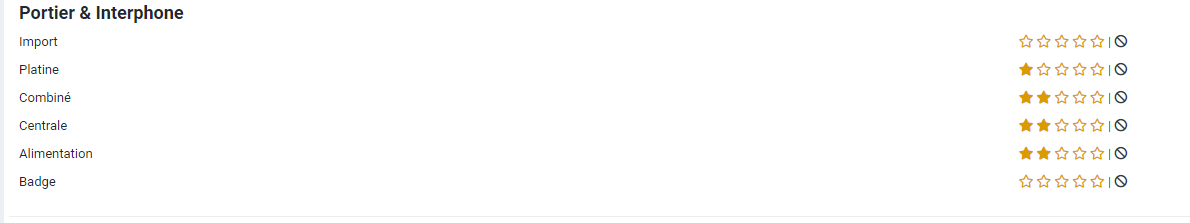 La note est affichée en nombre d'étoiles pleines, l'échelle va de 0 à 5.