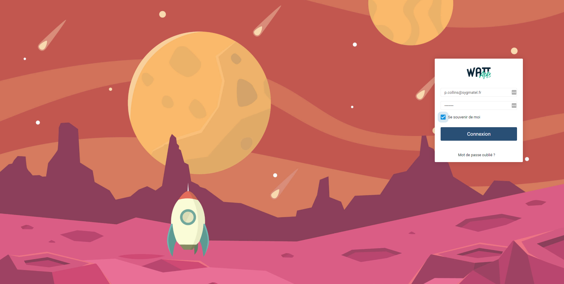 Pour ce faire, cliquer sur le lien "Mot de passe oublié" à l'écran de connexion de WattApp. WattApp demandera alors à l'utilisateur de renseigner son adresse mail. Si une adresse e-mail est trouvée en base de données et que l'utilisateur est actif alors il recevra un e-mail avec son nouveau mot de passe.