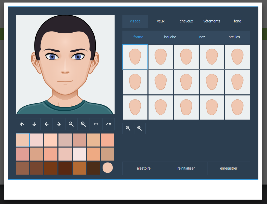 S'ouvre alors à nouveau une fenêtre de création d'avatar. Cliquer sur le genre désiré. L'utilisateur peut ainsi modifier l'apparence de son avatar à loisir avec les éléments disponibles. Il est également possible de générer un avatar aléatoirement. Pour ce faire, cliquer sur "Aléatoire" situé en bas à droite de l'interface.